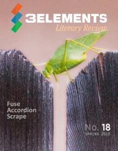 - “In a Scrape.” 3Elements Literary Review. No. 18. Cover. Summer 2018. Digital.